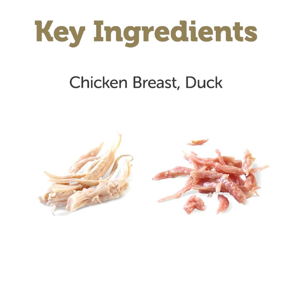 - Ingredients: Chicken Breast (45%), Duck (5%), Vegetable Gelling Agent, Potato Starch.