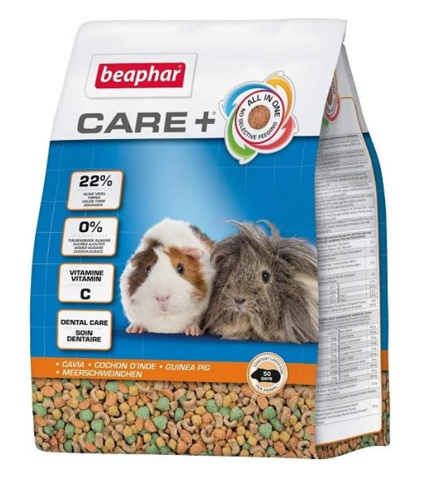 Low Fat Content: With low fat content, Care+ promotes a healthy diet for guinea pigs.