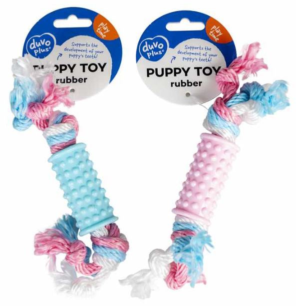 Duvo+ Puppy Toy Tpr Stick With Nylon Rope 20 CM ( Pink/Blue)