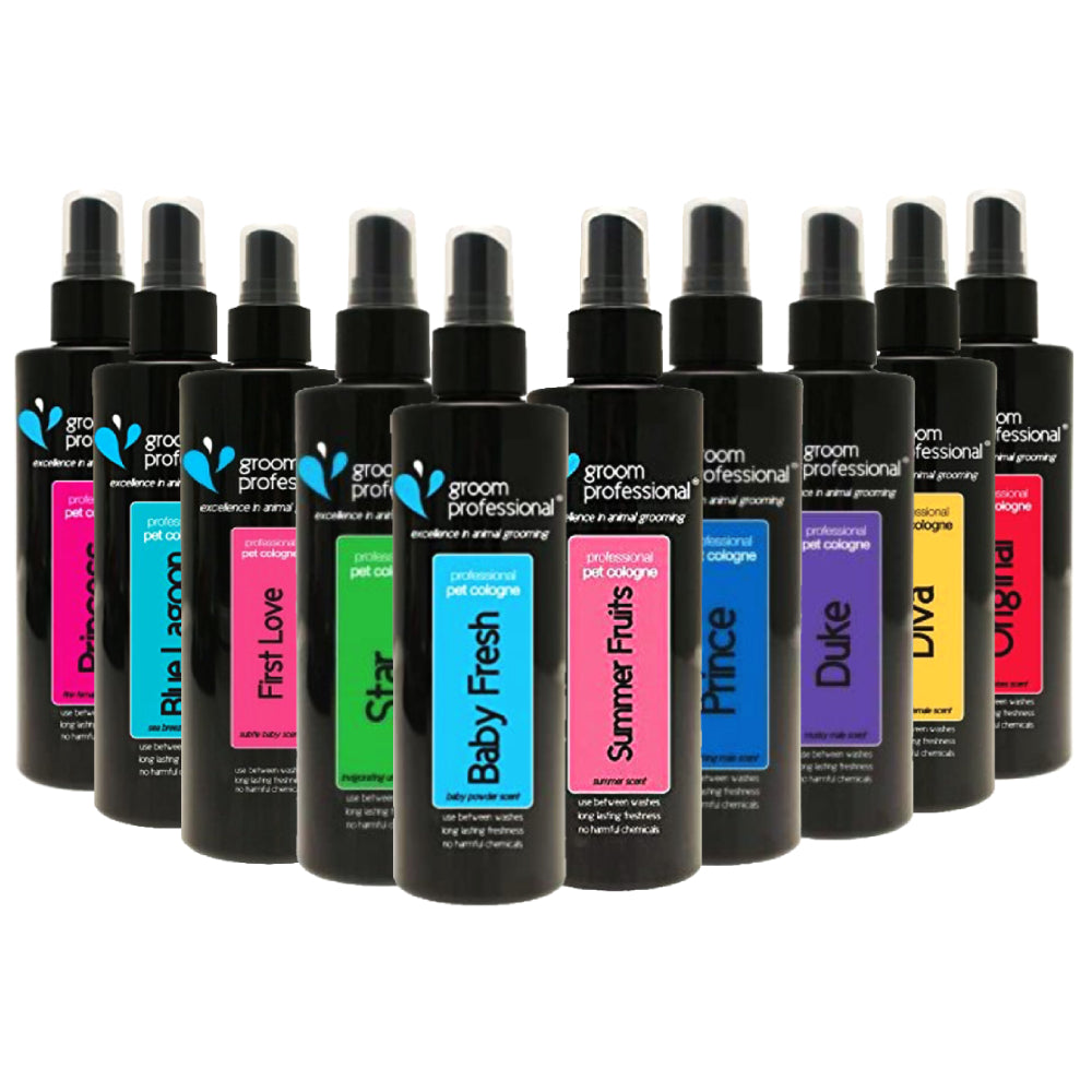 Diva Colognes: Offering an exquisite scent reminiscent of exotic fruits, jasmine, and velvet musk, ideal for adding a beautiful finishing touch to a freshly groomed pet or for use between washes.