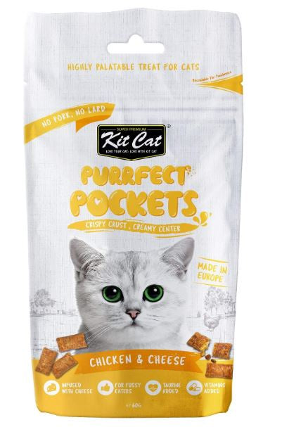 Duo Texture Delight: Kit Cat Purrfect Pockets are designed with a special duo texture. They boast a crispy exterior that offers a satisfying crunch and a soft center that's brimming with deliciousness. It's a delightful contrast that your cat will adore.