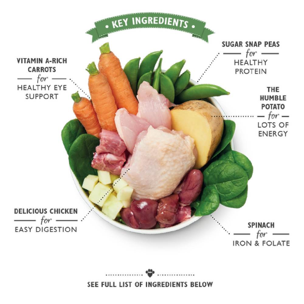This, nutritionally complete, grain free recipe is made using fresh chicken and vegetables, including sugar snap peas, carrots and spinach, with a burst of juicy apple. It’s a comforting, cosy dish that’s perfect to come home to after a lovely, long walk with the family.