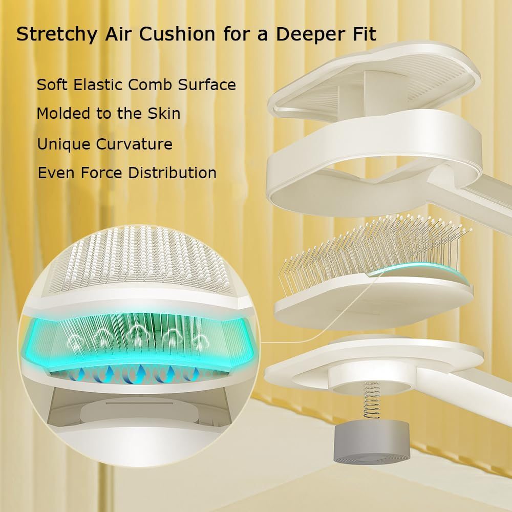 Elastic air cushion: The comb features an elastic air cushion paired with a soft needle cloth. This combination fits snugly against your pet's skin, applies force evenly, and is gentle enough for even sensitive pets to tolerate.