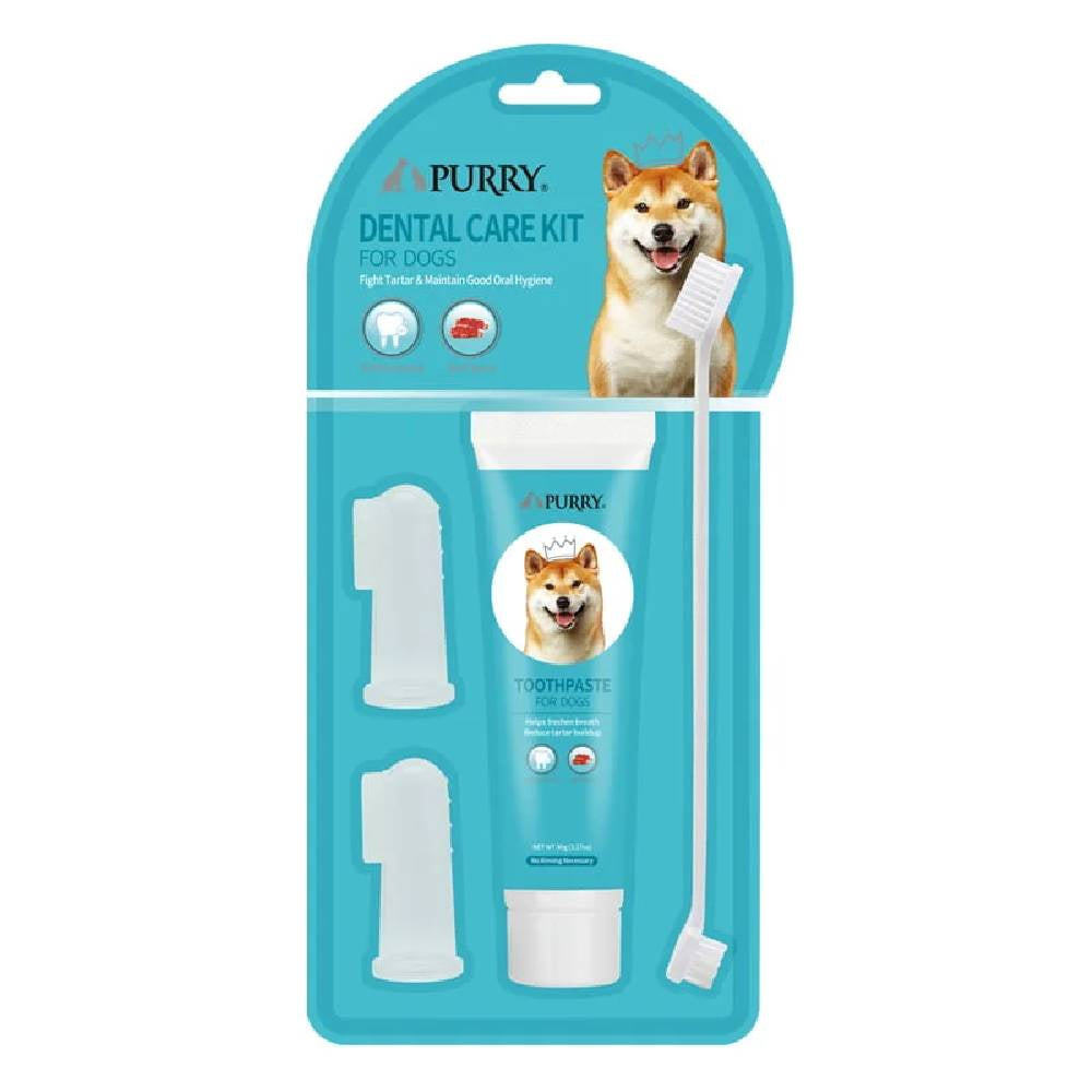 One toothpaste with Beef flavour 90g(3.17oz), Two Silicone finger toothbrushes, One two-sided toothbrush with two different brush heads. This dental kit for dogs includes a 90g toothpaste in a savory Beef flavour, along with two Silicone finger toothbrushes and a two-sided toothbrush with two unique brush heads. The combination of high-quality ingredients and multiple toothbrush options allows for a thorough and efficient dental clean, ensuring optimal dental health for your dog.