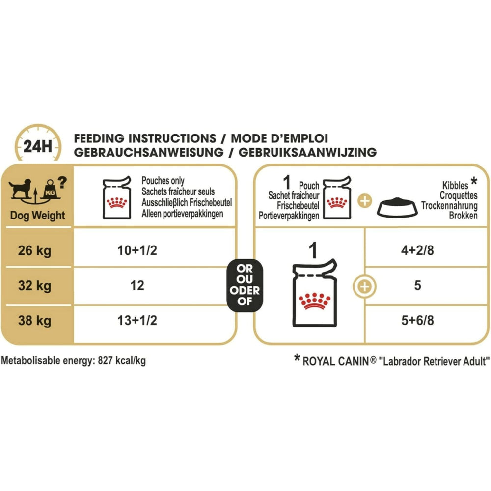Provide your Labrador with tailored nutrition using Royal Canin Breed Health Nutrition Labrador Wet Food Pouches. Each 140g pouch is formulated specifically to meet the nutritional needs of Labradors, ensuring optimal health and vitality. This wet food is rich in proteins and contains balanced levels of fats and carbohydrates to support your Labrador's active lifestyle. It includes essential vitamins, minerals, and antioxidants to promote overall well-being and a healthy immune system. The texture and flavor are designed to appeal to Labradors, making mealtime enjoyable while providing the nutrients they require. Royal Canin Breed Health Nutrition Labrador Wet Food Pouches are a convenient and nutritious choice for your beloved Labrador.
