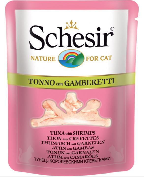 - Schesir cat wet food with a delicious blend of tuna and shrimps