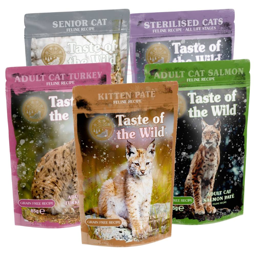 Taste of the Wild - Patê – 85g is a single-serving wet cat food that offers a smooth, spreadable paté texture. It's formulated with high-quality protein and natural ingredients, following the brand's grain-free philosophy. This food provides complete and balanced nutrition while also helping to increase your cat's hydration.
